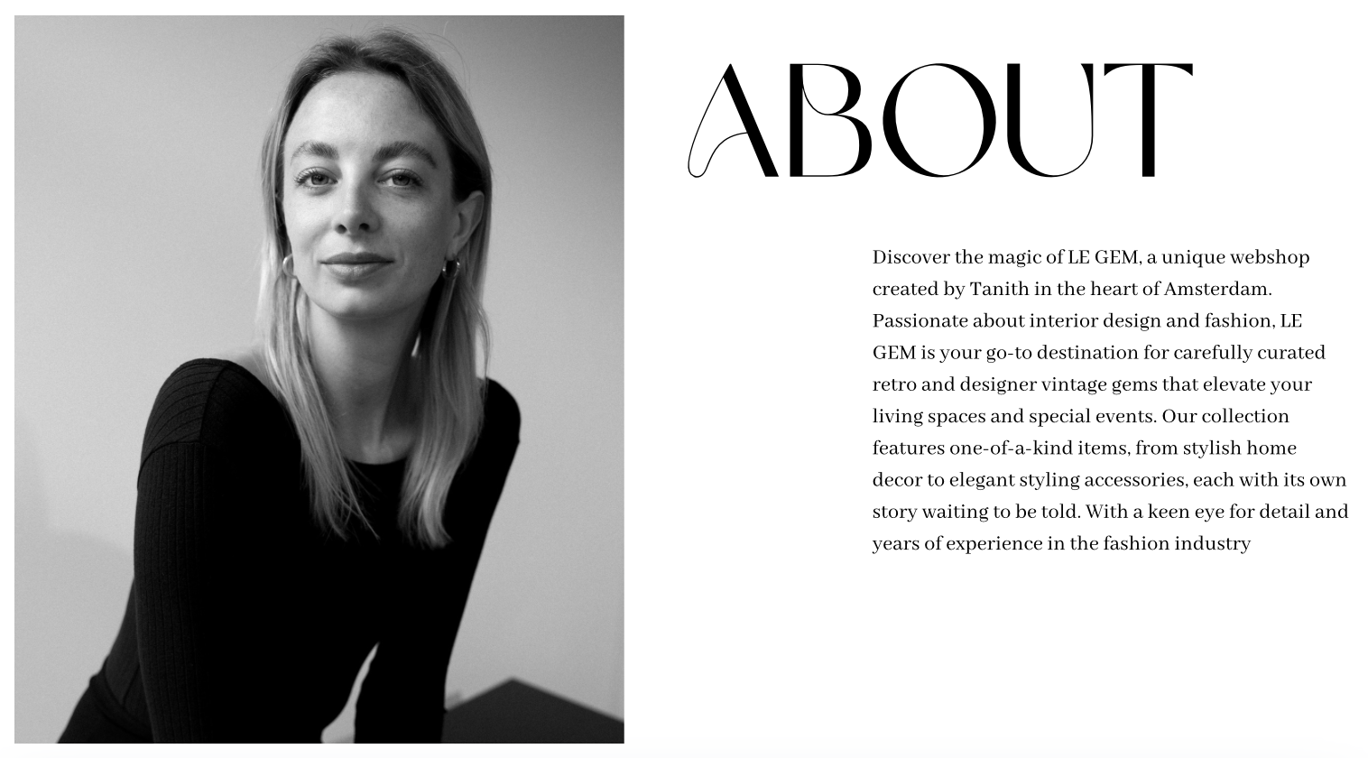 At LE GEM, we understand the importance of individual style and believe that interior and fashion should be a reflection of your personality. That's why our range of styles is diverse, ensuring that there is something for everyone. From vintage classics to trendy pieces, our selection will help you express your unique style sense. We invite you to browse through our webshop and discover the treasures that await you. Each item has its own story, waiting to be continued by its new owner. By choosing second-hand, you are not only making a sustainable choice but also embracing the beauty of pre-loved items.